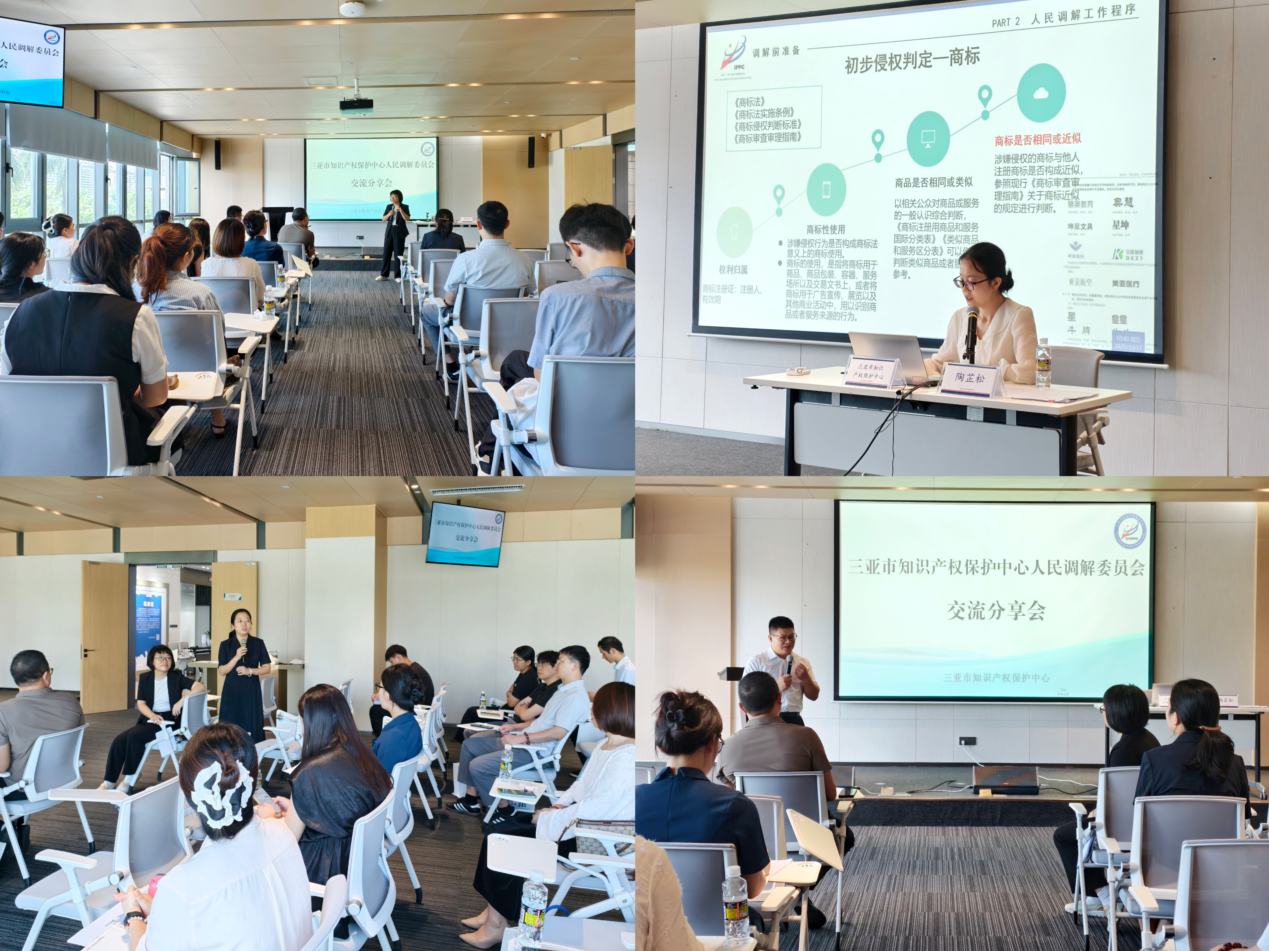 三亚保护中心维权与创新服务科业务人员与参与会议的调解员进行知识产权纠纷人民调解业务交流分享,借由实际案例的呈现,展示如何高效运用调解机制,帮助企业快速化解纠纷、降低诉讼成本,促进知识产权保护生态的健康发展。