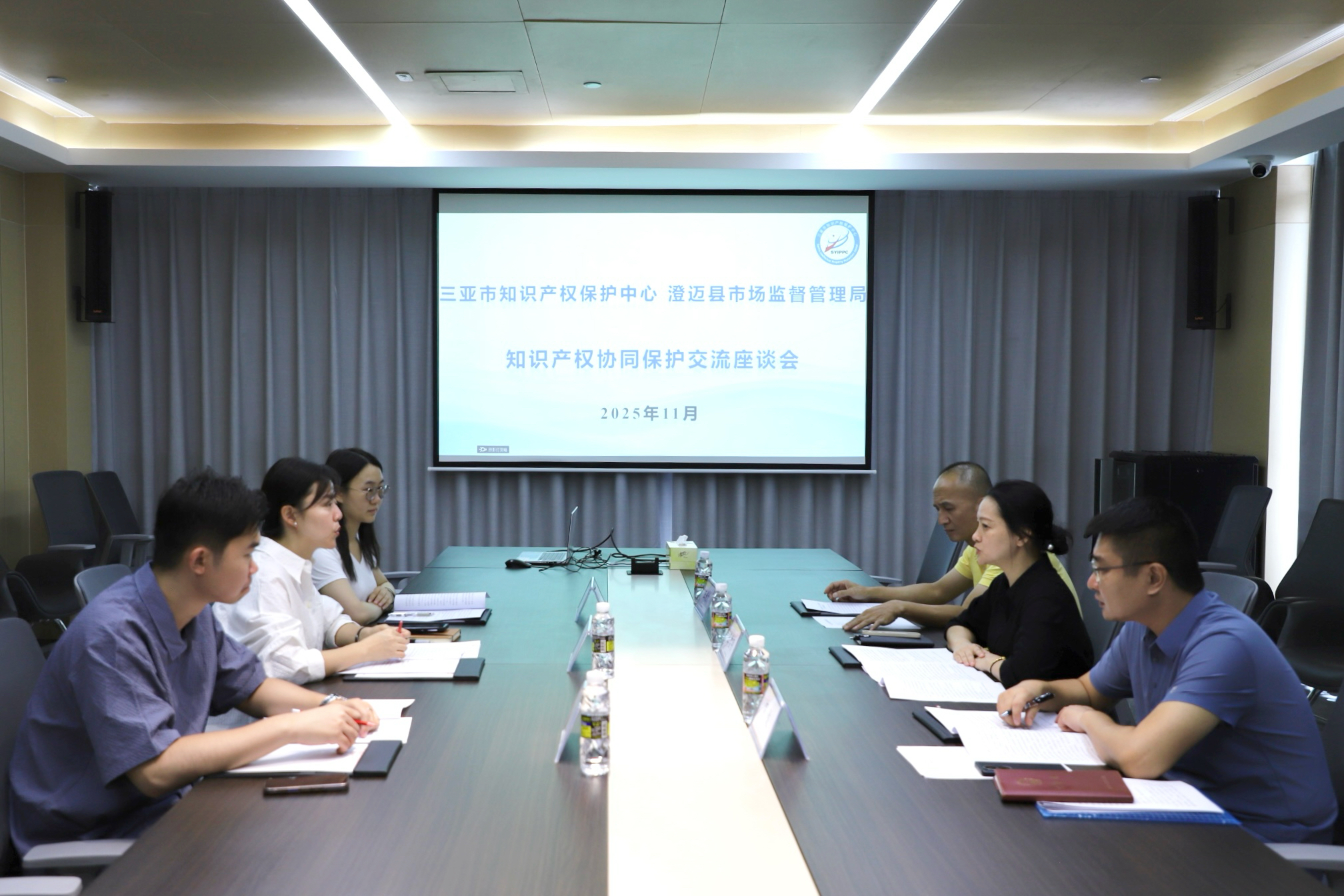 11月7日,澄迈县市场监督管理局代表团一行赴三亚市知识产权保护中心参观交流,双方举行座谈并共同签署《知识产权保护合作协议》。