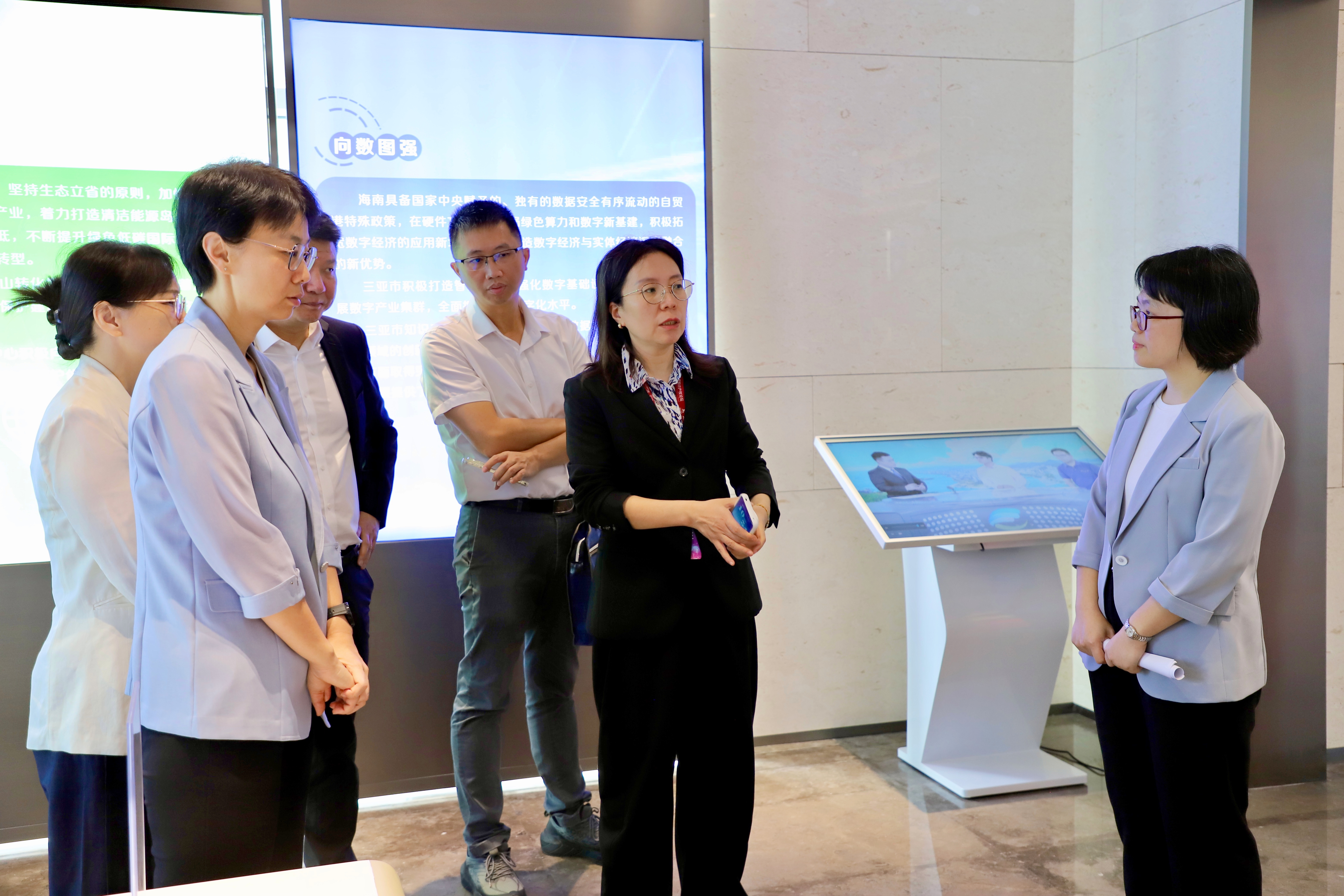宋蓓蓓一行实地考察崖州湾知识产权综合服务枢纽港和三亚市知识产权保护中心,详细了解三亚在“五合一”知识产权管理综合体制改革方面的经验做法,以及三亚保护中心在队伍建设、精准服务、跨区域服务、行政执法支撑、知识产权转化等方面工作情况。